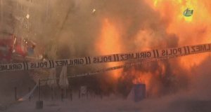 Görüntüde patlamayla birlikte büyük bir alev topunun oluştuğu, daha sonra ise ortalığı toz bulutunun kapladığı görüldü. Ayrıca çevredeki iş yerlerinin alarmlarının çalıştığı görüldü.