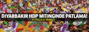 HDP'nin Diyarbakır İstasyon Meydanı'nda bugün düzenlediği miting devam ederken saat 17.40 sıralarında, platformun karşısında bulunan bir elektrik trafosunun olduğu yerde patlama oldu. HDP Diyarbakır milletvekili adayları konuşmaları sırasında meydana gelen patlama büyük bir panik yaşanılırken,patlamanın trafodan kaynaklandığı anons edildi.Yaralılar miting alanında hazır bekletilen ambulanslarla hastaneye taşındı.