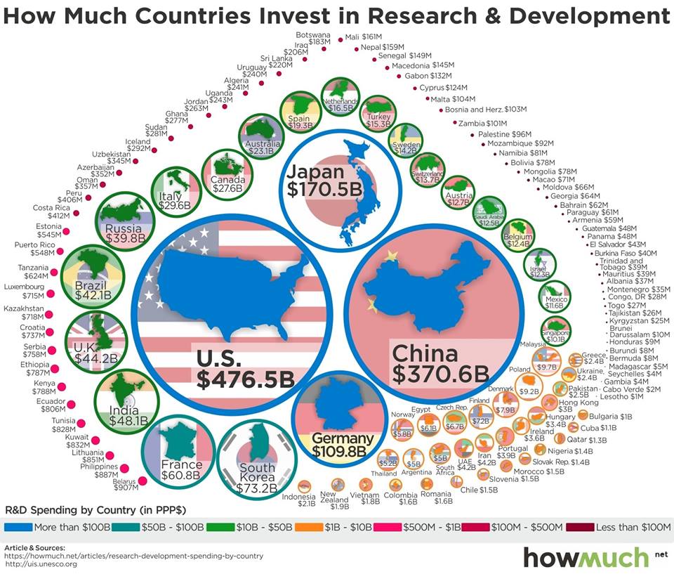 En çok AR-GE yatırımı yapan ülkeler en gelişmiş ülke konumunda. Bir ülkenin gelişmişlik düzeyi ARGE'ye yaptığı yatırımlarla paralel seyrediyor.