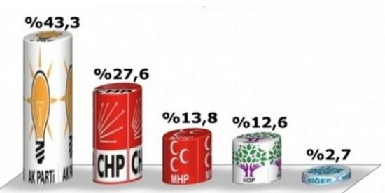 Son olarak Konsensus Araştırma Şirketi, 5-13 tarihleri arasında 81 ilde 1500 kişiyle yaptığı anketin sonuçlarını yayınladı. Yapılan anket sonucunda bu pazar bir genel seçim olsa AK Parti'nin yüzde 43,3, CHP'nin yüzde 27,6, MHP'nin yüzde 13,8, HDP'nin yüzde 12,6 ve diğer partilerin toplamda yüzde 2,7 oy oranlarına ulaşması bekleniyor.